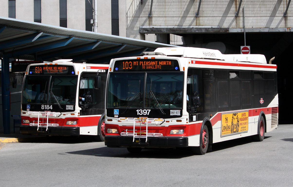 TTC 1397 & 8184 (2008/2010 Orion VII NG ) at Eglinton Station Operating Routes 103: Mt Pleasant North & 61A: Avenue Rd North (2011)The Iconic Transitway: Ottawa’s Transit Backbone