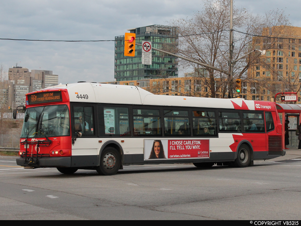 OC Transpo 4449 (2006 New Flyer D40i) with Beluga Hump Operating Route 86B: Baseline at LeBreton Transitway Station (presently Pimisi) (2012)I was fortunate to ride the NFI D40i once during my time in Ottawa, and the loud roar of the diesel engine instantly brought back the nostalgia of the Orion VIIs (rawrrr >:D). The STOP REQUESTED sign is an ancient relic, and the singular sliding rear door is fascinating compared to the push-to-open doors found today.